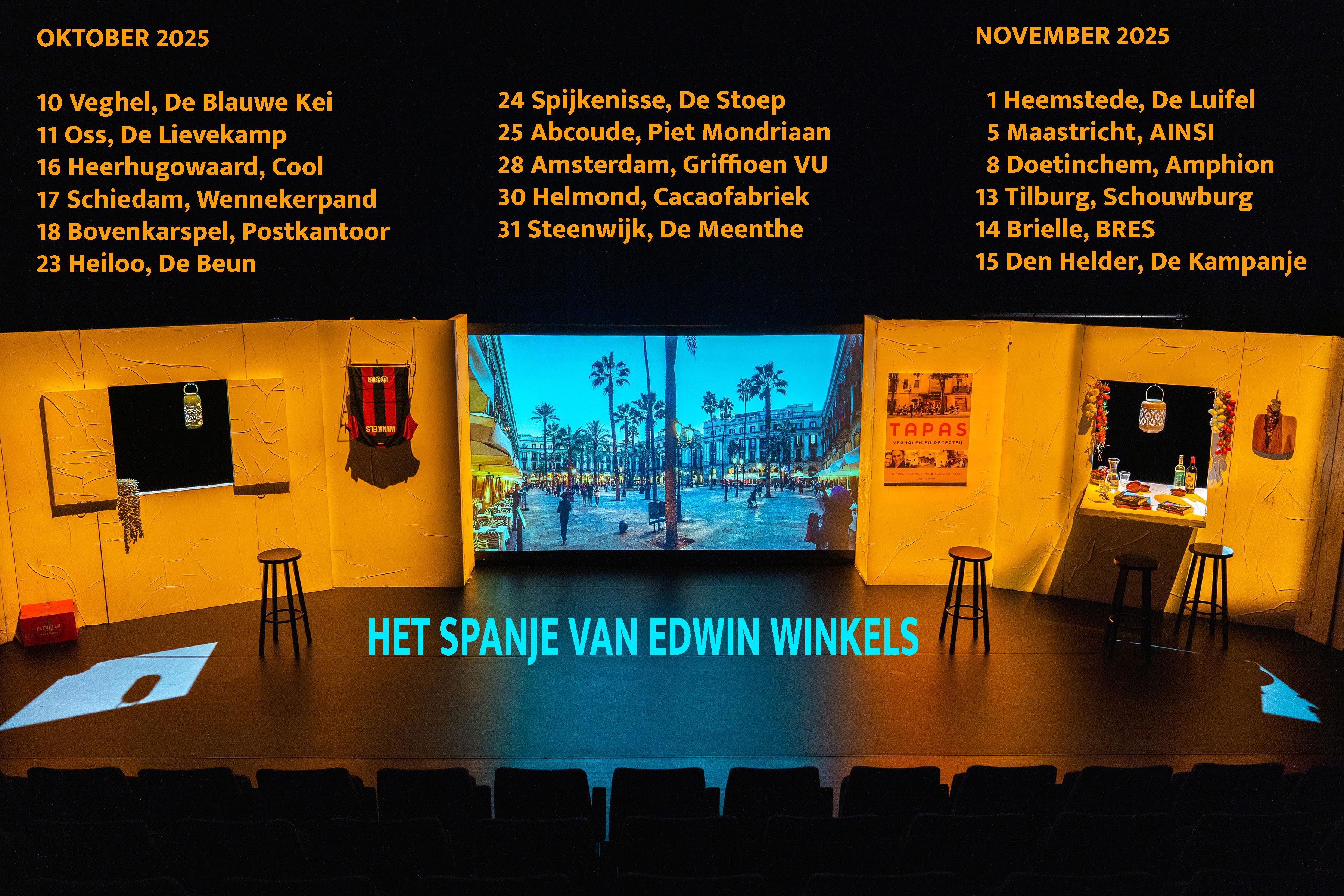 Schrijver, journalist en correspondent Edwin Winkels woont en werkt er nu 35 jaar en is misschien wel de Nederlander die het beste weet hóe anders Spanje is dan Nederland. Hoog tijd om zijn kennis, persoonlijke ervaringen, bijzondere ontmoetingen en vermakelijke anekdotes te delen tijdens een bijzondere theateravond. Een beetje op zijn Spaans: informeel en improviserend, alsof we aan de toog van een tapasbar een beetje staan te kletsen.