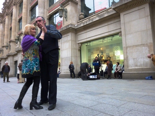 Een tiental stellen komt trouw bijeen op de grootste dansvloer van Barcelona; soms komen er nieuwe paren bij, anderen komen ineens niet meer terug. Dood? Ze zijn niet de jongsten meer, hebben waarschijnlijk geen zin meer in een ouderwetse danssalon, waar nog altijd genoeg middagen en avonden voor de gepensioneerden worden georganiseerd. Dit is op straat, en voor de ogen van nieuwsgierige passanten rijgen zij de ene na de andere wals aaneen. Onder Franco mochten ze dit nooit doen, natuurlijk.