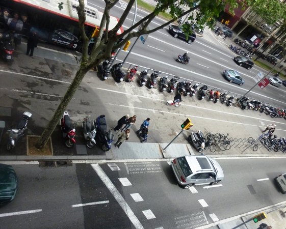Een dagje Diagonal. Altijd de moeite waard, zeker als je er niet met je auto vaststaat voor stoplichten die totaal niet op elkaar zijn afgestemd. Op de fiets, trouwens, is het ook geen pretje, want dit eerste fietspad ooit van de stad tekenden ze op het deel waar heel veel voetgangers lopen. Sindsdien zijn de botsingen er aan de orde van de dag. Tóch, het blijft een mooie, opvallende straat, zeker het vroeger sjieke centrale deel waarover volgende week een referendum wordt gehouden. De gemeente vindt dat de avenue op de schop moet en de bewoners, niet alleen die van de Diagonal, maar van heel Barcelona, mogen daarover meepraten.