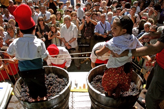 Dit weekeinde was het ‘dorpsfeest’ van Plus Ultra, met als hoogtepunt het druiven trappen door de kinderen uit de wijk. Want ooit stonden hier, op de flanken van de Montjuïc, huise wijnranken waar lokale wijn van werd gemaakt. Nu ligt Plus Ultra ingeklemd tussen hoge flats in een voor velen vergeten deel van Barcelona, aan de rand van de Zona Franca, waar je ook andere historische wijkjes als Can Clos en El Polvorí kunt vinden en huisjes kunt aantreffen die je in de stad niet meer verwacht.