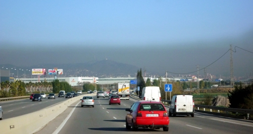 Regelmatig vragen collega’s op de krant nog of dat niet lastig en vervelend is, werken in Barcelona en wonen in Sitges. ‘Al dat reizen,’ zeggen ze dan. De afstand is 45 kilometer, 37 minuten met de trein, een half uur in de auto buiten de spits. Binnen de stad zelf zijn sommigen langer bezig op de krant te komen, zeg ik dan. Maar een misschien nog beter argument is bovenstaande foto, op een zonnige dag vanuit mijn auto genomen op de snelweg C-32 ter hoogte van Viladecans. Dát, die asgrauwe wolk, is wat je de hele dag inademt als je in Barcelona werkt én woont. Het verkeer, de industrie, de huizen: zo’n metropool veroorzaakt een enorme luchtverontreiniging en op windstille dagen blijft dat vuil heerlijk de hele dag boven de stad hangen. Als je zelf in de stad bent, heb je nauwelijks in de gaten dat de hemel er net iets mínder blauw is dan in Sitges, of elk ander plaatsje dat verder verwijderd van de grote stad ligt.