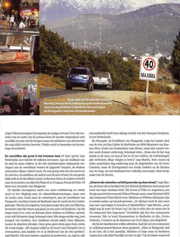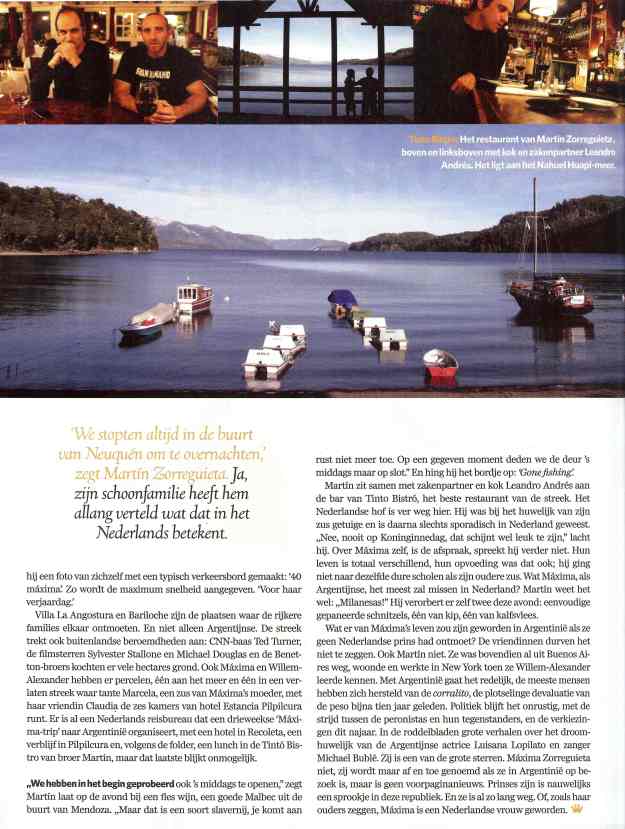 Een klein tipje van de journalistieke sluier opgelicht: een heerlijke fles Argentijnse Malbec uit Mendoza in het restaurant Tinto Bistro van broer Martin in Villa la Angostura kan wonderen doen. En een anecdote: vroeger reed de hele familie Zorreguieta in de auto de 1.700 kilometer naar dit dorpje in Patagonië en overnachtten zij in een stadje dat Neuquen heet.