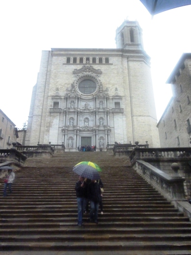 Vroeger reed ik er langs over de snelweg, in de auto of een Iberbus, of kwam er doorheen met de trein, en dacht ik altijd dat het een gore, bevuilde stad was omdat er een grijze deken van fabrieksrook boven leek te hangen. Hetzelfde idee had ik óók altijd van Lyon, totdat ik de stad zelf eens in moest, en toen bleek het een heerlijke Franse terrassenstad te zijn. Dat overkomt je ook met Girona, de stad waar ik het nu over heb: van dichtbij blijkt het alle vooroordelen te logenstraffen, al zijn dit niet de beste maanden om Girona te bezoeken; de aanleg van de hogesnelheidslijn voor de trein (AVE) werpen een stoffige, onneembare barrière op die tot flink wat opstoppingen leidt.