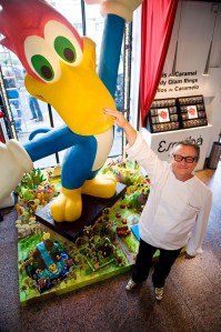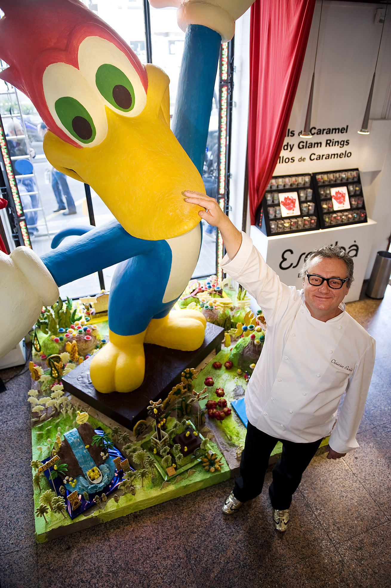Ook wij hebben er vandaag alvast één gekocht, maar hij is voor morgen bedoeld. (Alle banketbakkers maken weer heerlijk gebruik van de traditie: de monas zijn peperduur; er staan er zelfs van meer dan 250 euro te koop…) De mona is een taart, meestal van chocola, met allerlei figuurtjes erop, en vaak ook de eieren die in Nederland zo typisch zijn, deze dagen. Je hebt hele kunstwerken, afbeeldingen van huizen, auto’s, mensen of tekenfilmhelden, zoals deze, gemaakt door de Barcelonese bakker-kunstenaar Escribá.