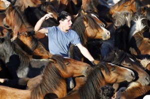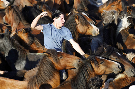 Spanje is veel meer land dan stad, veel meer natuur dan steen, en misschien daarom die obsessie voor beesten, overal aanwezig. Galicië, bijna totaal agrarische- en vissersregio in het noordwesten met honderden nietige dorpjes, heeft zijn Rapa das Bestas, talloze dagen in de zomer dat de wilde paarden uit de bergen gemarkeerd moeten worden. De beste boeren strijden om wie de meeste van die paarden tijdelijk onder controle krijgt voordat ze weer worden vrijgelaten. Het beroemdste festijn vindt in A Estrada, bij bedevaartsoord Santiago de Compostela plaats.