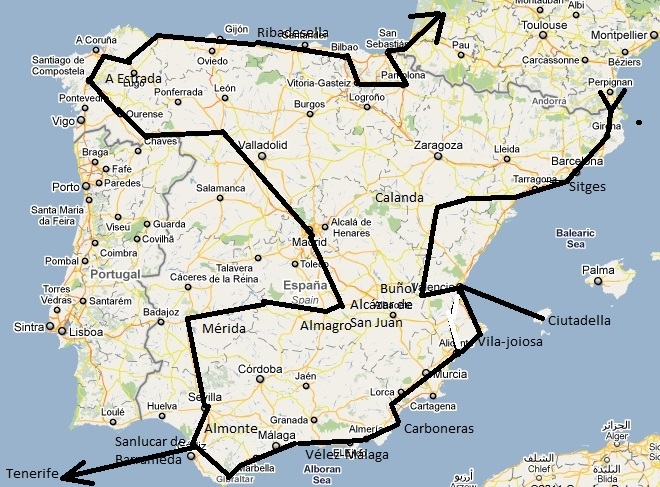 De zee. Spanje heeft officieel 3.900 kilometer kust, maar een precieze berekening brengt dat aantal tot liefst 7.900. Spanje leeft van die zee, en ook dat moet worden geëerd. Zoals in Carboneras, het voorportaal van één van de mooiste, minst verpeste streken van het land, het natuurpark Cabo de Gata aan de zuidoostpunt. Daar halen de vissers in augustus de Virgen del Carmen (de Heilige Maagd van de berg Karmel) uit haar kerkje om haar, mooi versierd op een vissersboot, naar de haven te brengen. Carmen is de beschermheilige van de vissers en onder haar toeziend oog wordt bij aankomst een enorme sardinada popular gehouden, waarbij bevolking en bezoekers duizenden sardientjes van de grill verorberen.