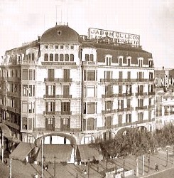 En waar nu de immense Corte Inglés het beeld van dit ‘centrum’ van Barcelona bepaalt, lag tot 1962 het Casa Vicenç Ferrer, met daarin hotel Victoria, hier links op een foto uit 1931. Later, na de Burgeroorlog, kwam daar dans- en theesalon Rigat, in die grauwe naoorlogse jaren nog één van de weinige plekken van vermaak mét terras op het Plaça de Catalunya; de rest was in de oorlog allemaal gesloten. En in plaats van al die prachtige hotels en grand café’s kwamen er talloze bankgebouwen die nu nog altijd in meerderheid zijn.