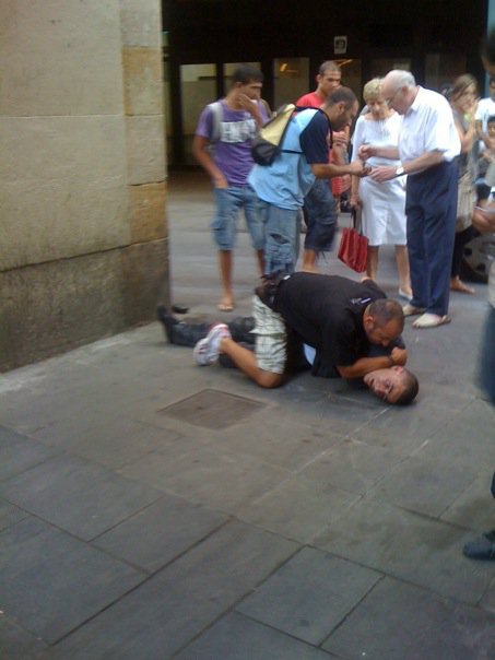 Maar hoe snel en onopgemerkt de dieven kunnen zijn, of hoe onoplettend we zelf soms zijn, ontdekte ik gisteren weer eens. Ik was op het strand van de Barceloneta bezig met een kroniek over Jordi, de zoon van een fotograaf die een zaakje, Locals, is begonnen voor surfers. Daar kunnen ze hun spullen veilig achterlaten voordat ze de golven in gaan. Hij heeft ook een mooie website voor surfers die willen weten of er in Barcelona, Sitges of El Masnou wel golven zijn. “Ik heb zo vaak een surfer op straat in zijn pak voorbij zien lopen, omdat alles gejat was terwijl hij op zee was…” zei Jordi me. En terwijl ik naar hem keek, in de golven, zat op twee meter achter me één van de bekende rovertjes van de Barceloneta de tassen van twee andere surfers leeg te halen. Die zagen dat gelukkig en Mickey en Carlos vlogen snel het water uit om de dief bij zijn lurven te grijpen en een flinke duw te verkopen. “Ik ben het zó zat,” zei de één. En dat zijn we allemaal. Niks is veilig meer, je wordt er soms paranoïde van. Gewoon nooit meer wat bij je hebben, dat is het veiligst. Had ik meestal de portemonnee achter de broekriem bij mijn ballen zitten, nu ga ik de stad in met wat los geld en verder helemaal niets…