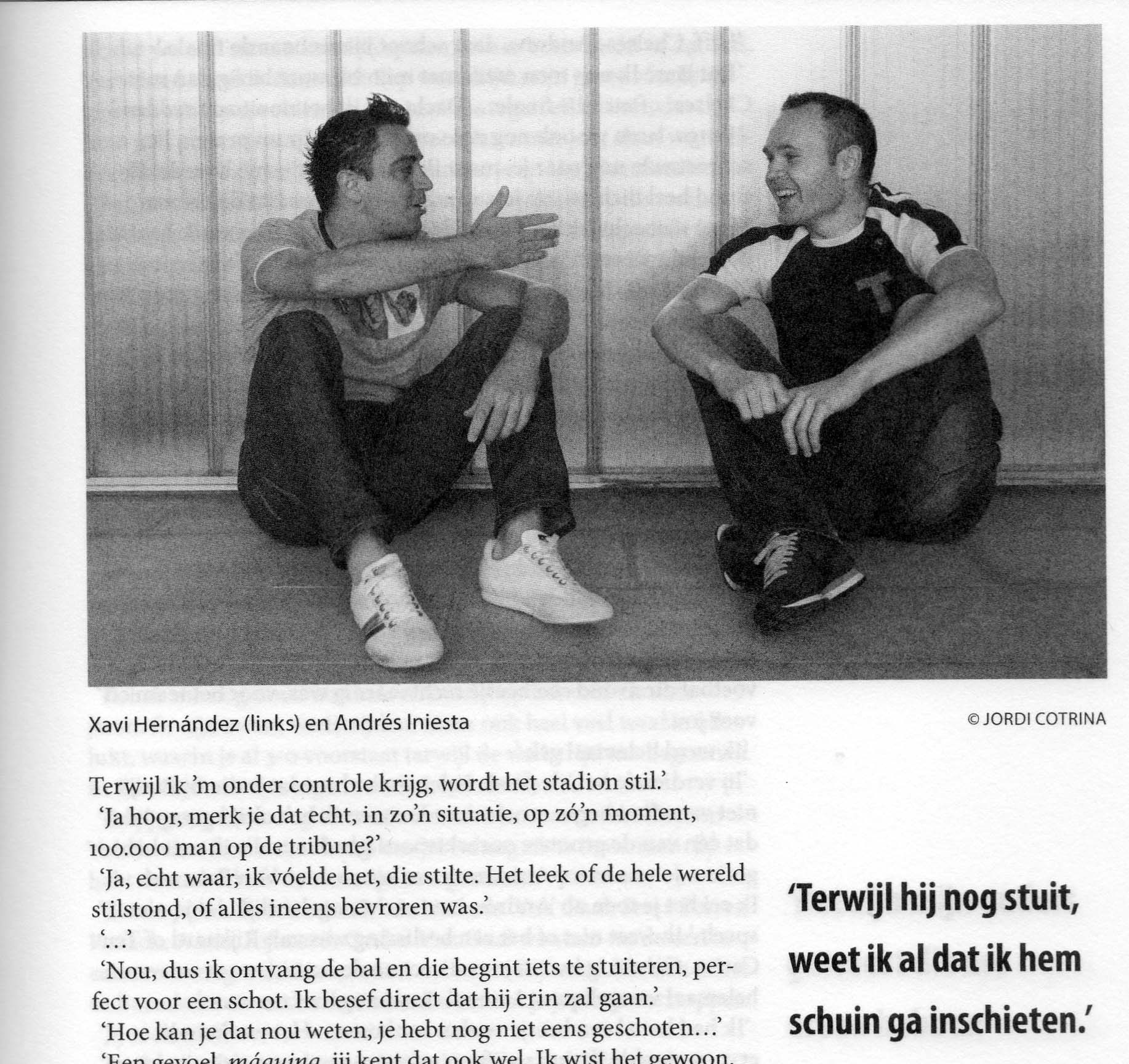 ‘We zijn de beste ploeg van de wereld, maar daardoor hoeven we niet anders te zijn. Het voetbal maakt een personage van je, de pers doet dat, maar als je daarin gaat geloven, zit je al fout. Je moet jezelf blijven, altijd. Kijk naar jezelf, Andrés. Je hebt Spanje de eerste wereldtitel bezorgt. Voel je je nou een ster?’